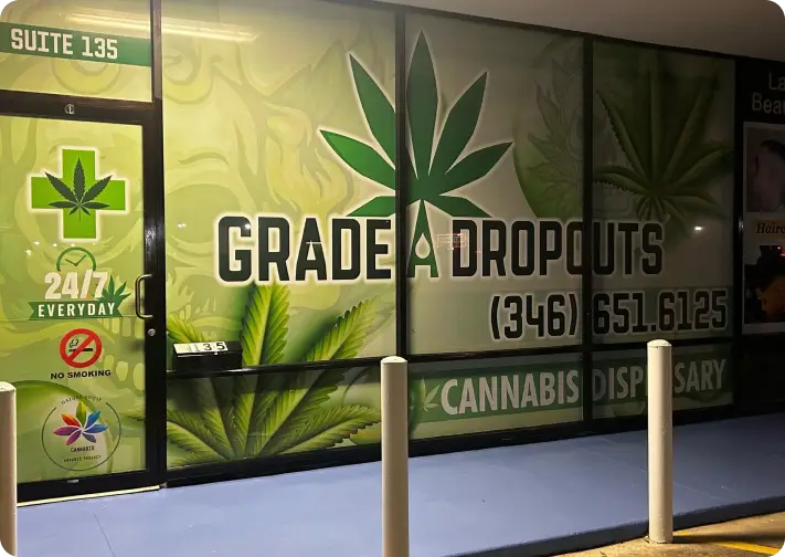 At Grade A Dropouts, we’re not just another dispensary — we are a lifestyle brand, a destination, and a community hub that merges premium cannabis culture with everyday comfort and enjoyment. Our store proudly stands in Pasadena, Texas, serving as a beacon for those seeking authenticity, relaxation, and quality. Beyond our local presence, our service extends nationwide, allowing customers across the country to connect with the same level of excellence that defines our brand.